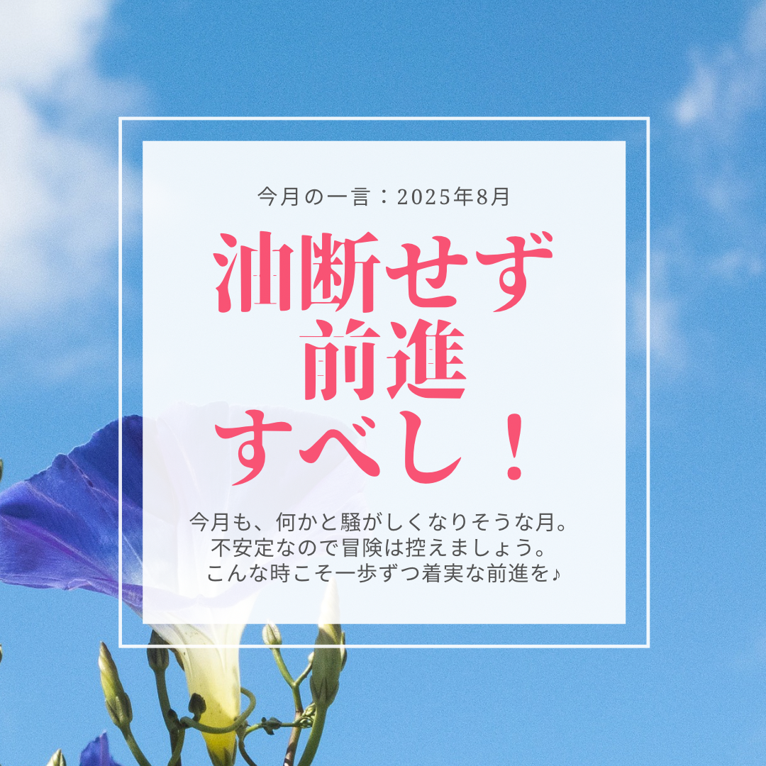 2025年8月6日 / 最終更新日 : 2025年8月6日 lifetherapy BLOG ⚫︎今月の一言(2025年8月) みなさん、こんにちは!いつもありがとうございます♪ 暑い日が続きますねぇ…みなさん、お変わりありませんか? 8月も1週間ほどが経ちました。7月の予言騒ぎも無事終わりホッとしている頃でしょうか? この時代の最先端を進むみな […]